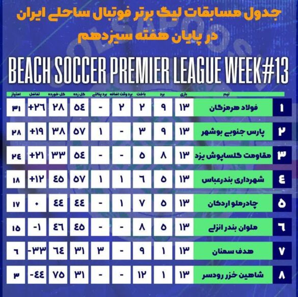 گفتنی است در هفته پایانی مسابقات، پنج شنبه آینده پارس جنوبی در یزد مهمان گلساپوش است که به الکلاسیکوی فوتبال ساحلی ایران مشهورند؛، مسابقه ای که برای یزدی ها می تواند انتقام باخت دیدار رفت باشد، برای بوشهری ها هم اثبات اینکه قطب این رشته ورزشی هستند.