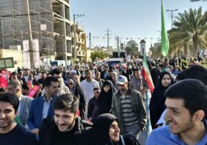 به گزارش ندای استان، راهپیمایی ۲۲ بهمن در مرکز استان از میدان قدس شهر بوشهر آغاز و شرکت کنندگان با پیمودن مسیر استادیوم شهید بهشتی تا میدان المپیک را با سر دادن شعارهای انقلابی، از جمله “مرگ بر آمریکا”، اظهارات گستاخانه مقامات آمریکایی را محکوم و بر تداوم پاسداری از آرمانهای انقلاب و خون شهدا تاکید کردند.