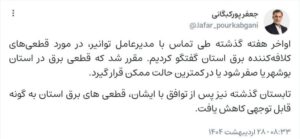 نماینده بوشهر: قطعیهای کلافه کننده برق حداقلی میشود
