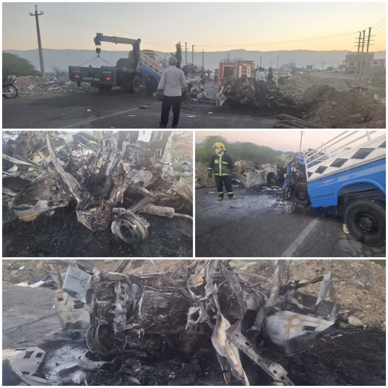 به گزارش ندای استان،فرمانده پلیس راه بوشهر گفت: این حادثه در ساعت ۴ صبح امروز در محور کمربندی شهر دیر رخ داد. در این سانحه، یک دستگاه نیسان حامل کپسولهای گاز با یک خودروی پژو به شدت برخورد کرد که به دلیل وجود محموله گاز، خودروها دچار انفجار شدند.