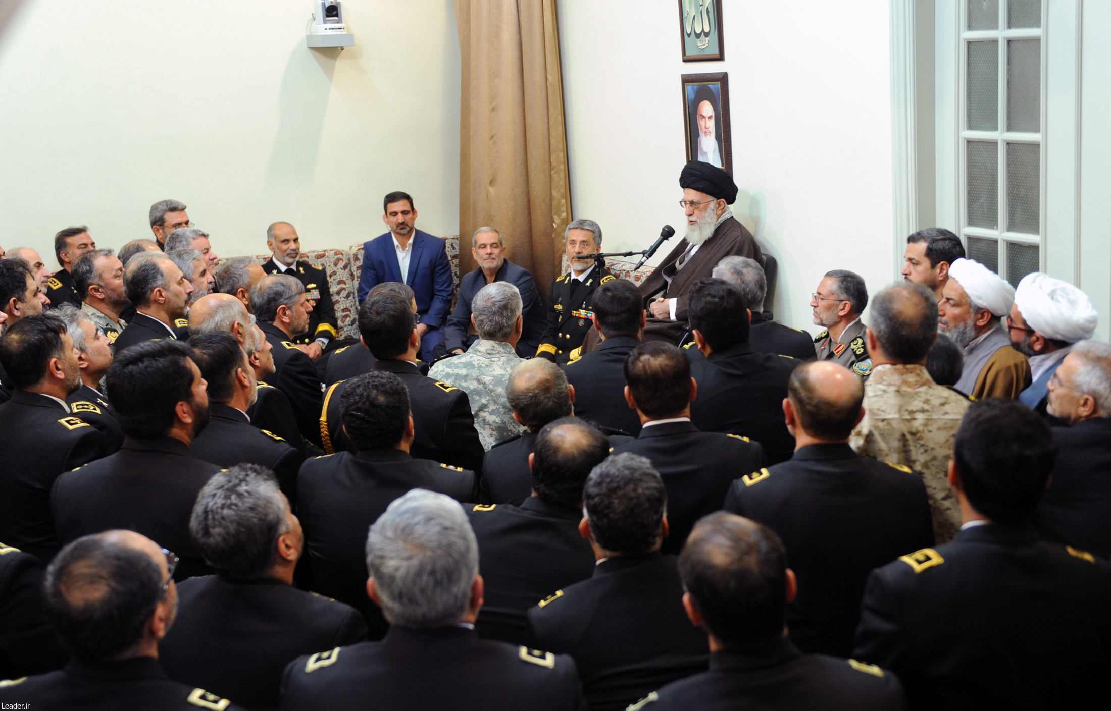 در این دیدار که به مناسبت ۷ آذر روز نیروی دریایی برگزار شد، حضرت آیت الله خامنهای با اشاره به اهمیت صنعت دریانوردی در پیشرفت برخی کشورها، افزودند: کشور ما از مرزهای وسیع دریایی و همچنین سابقه طولانی در دریانوری برخوردار است، بنابراین قدرت و توانایی نیروی دریایی جمهوری اسلامی باید در «شأن و تراز نظام اسلامی و تاریخ این کشور» باشد.