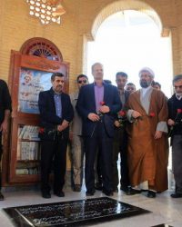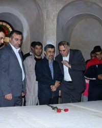 احمدی نژاد قبل از سخنرانی خود بر سر مقبره منوچهر آتشی و شیخ حسین خان چاهکوتاهی حضور یافت.