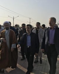 احمدی نژاد پس از ورود به بوشهر، صبح امروز در ساحل به قدم زنی پرداخت و با برخی شهروندان دیدار کرد.