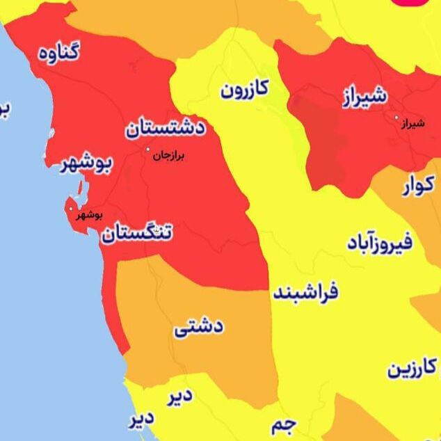 ندای استان:طبق گزارش سامانه ماسک متعلق به وزارت بهداشت، درمان و آموزش پزشکی چهار شهرستان استان بوشهر در وضعیت قرمز پرخطر کرونایی قرار گرفتند.